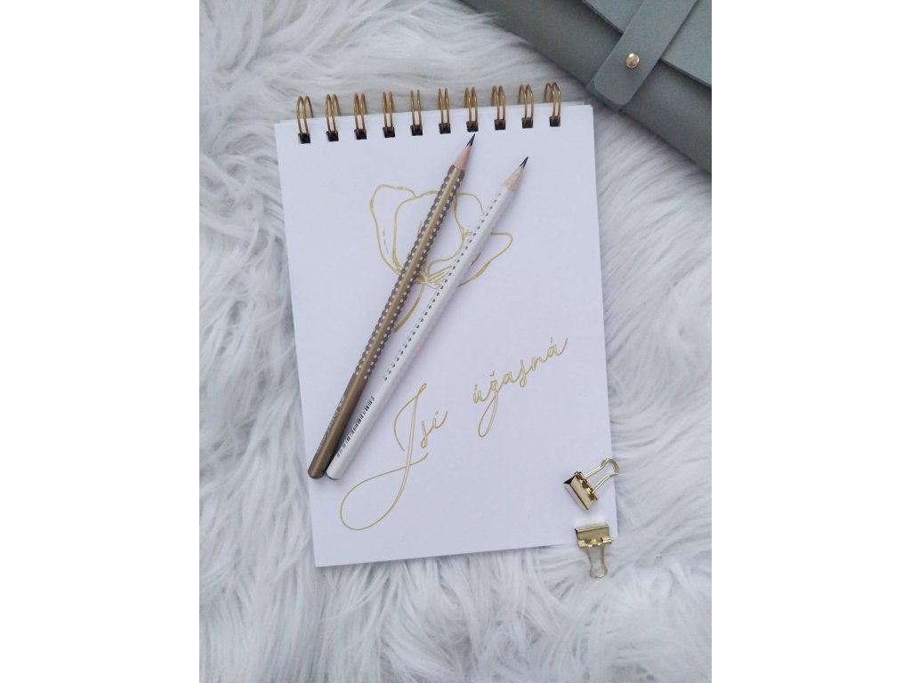 Tečkovaný blok s citátem, který máte vždy po ruce, když potřebujete. Každý blok má jiný citát, který není prozrazen. Kresba je třpytivě zlatá.